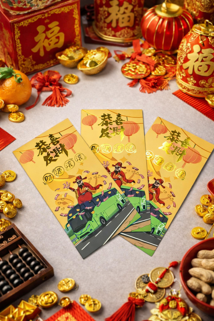 Celebrating the Lunar New Year with our exclusive angbao design, featuring Cai Shen Ye riding our bus